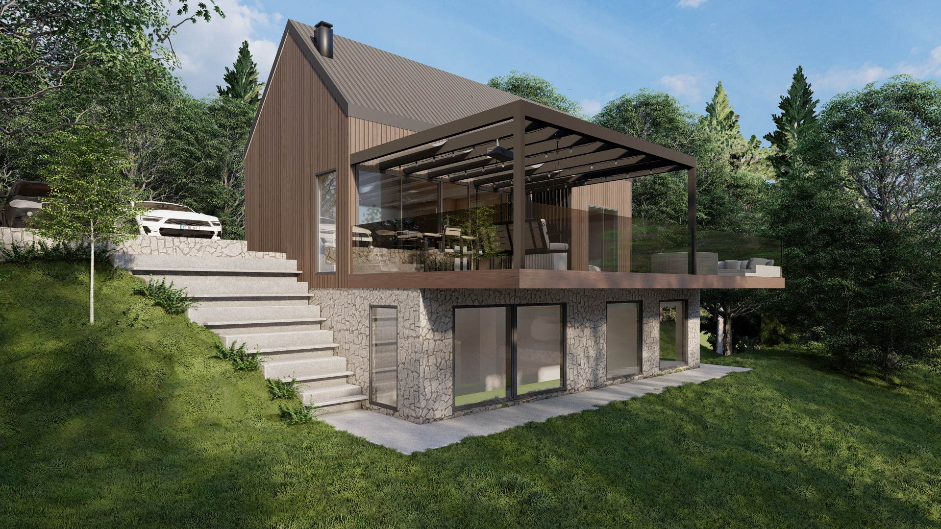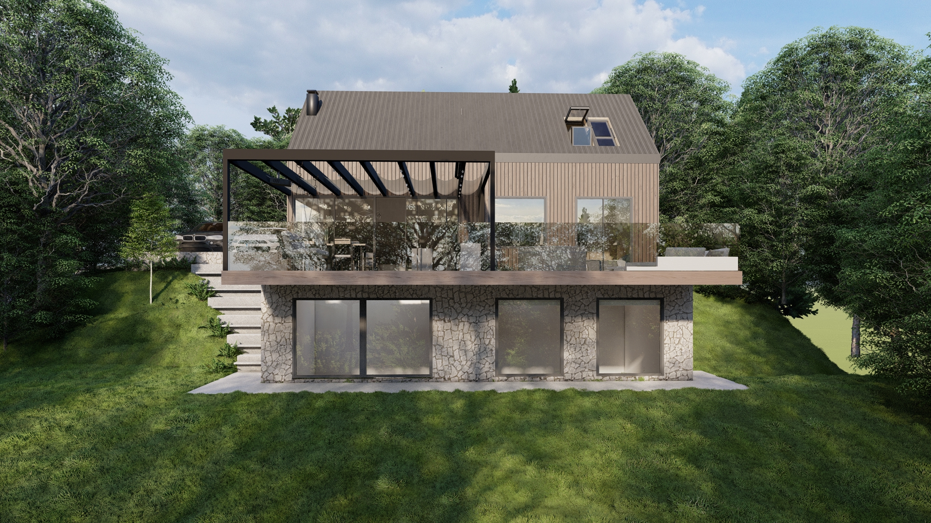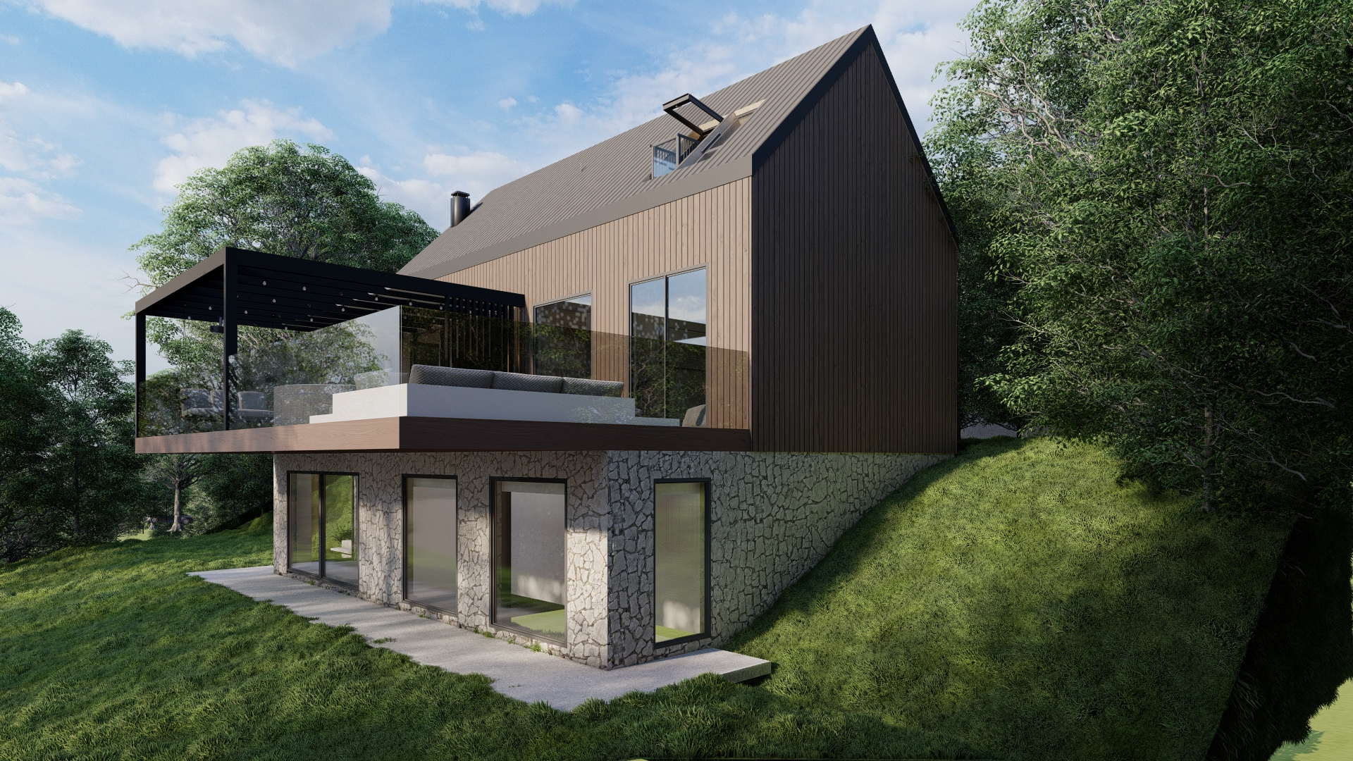 In the picturesque area of Orešje Okićko, just 30 km from Zagreb, lie three luxury villas with a total area of 220 m², each featuring a gallery, private spa corner, and a spacious terrace with captivating views. The lower level offers an additional toilet, storage, and a generous multi-purpose room that can serve as a private gym, wine cellar, cigar lounge, or wellness zone. Surrounded by the Žumberak – Samoborsko gorje Nature Park, and defined by thoughtful architectural design, the project is an ideal choice for family life in an atmosphere of peace and understated luxury.